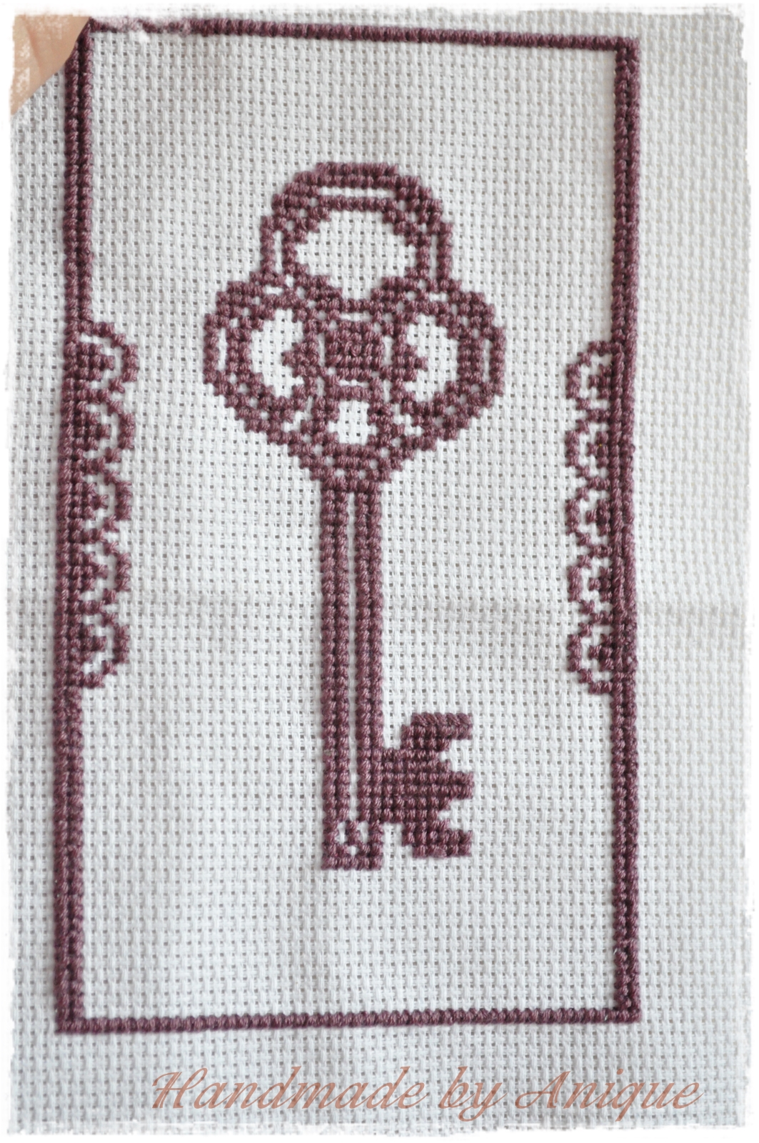 Taki oto kluczyk wyhaftowałam już jakiś czas temu. Niestety jeszcze nie znalazłam dla niego odpowiedniej ramki, więc leży sobie grzecznie na półce i czeka aż przyjdzie pora na wyprasowanie i oprawienie :) Byćmoże nie wyląduje wcale w ramce tylko spożytkuję go w jakiejś innej formie.