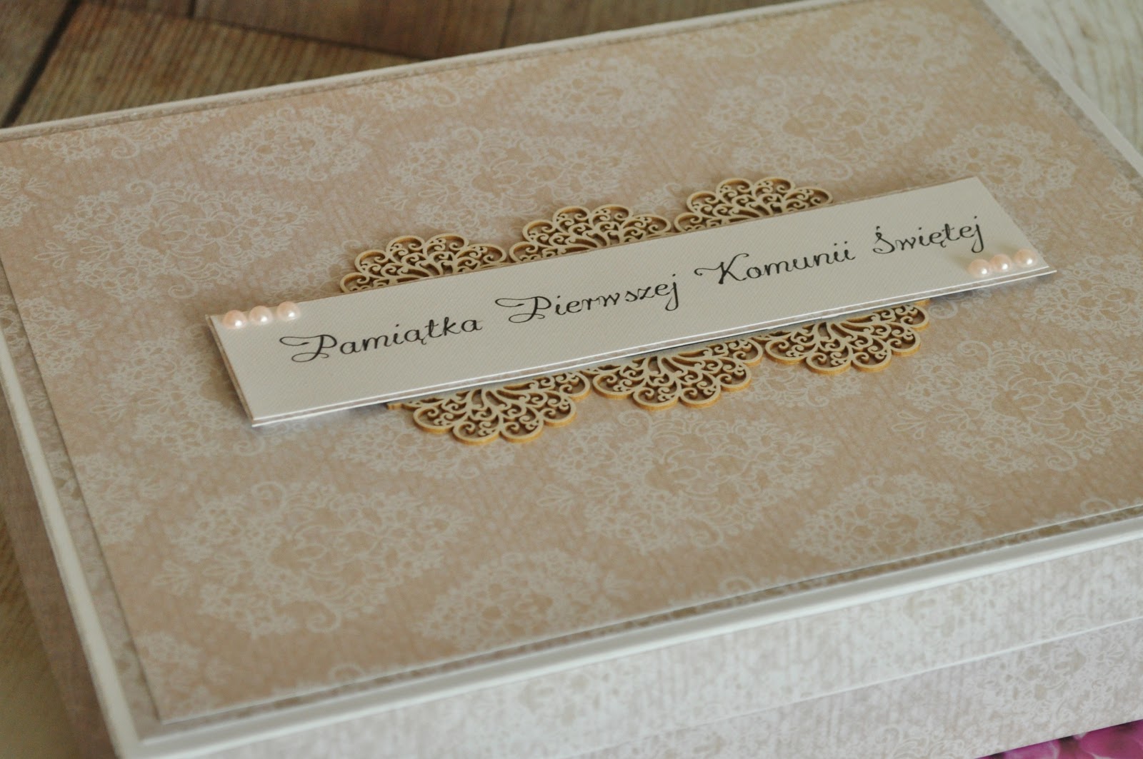 Album komunijny i Księga gości "2 w 1" w komplecie z pudełkiem na Pamiątkę I Komunii Świętej.