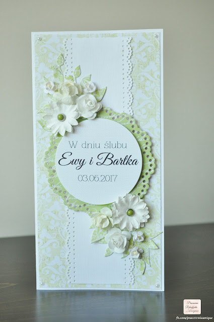 To chyba moja pierwsza kartka ślubna w odcieniach zieleni. W dodatku wyjątkowo mi się podoba jej układ, choć bardzo rzadko robię format DL.