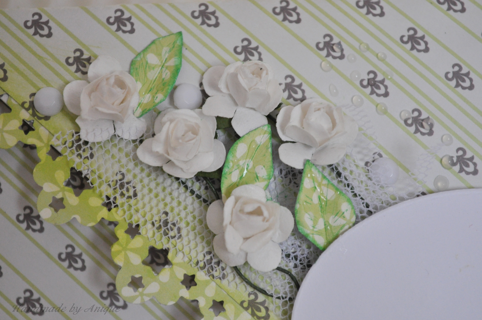 Kartka na urodziny w formie kopertówki, w połączeniu zielony i biały kolor. W finalnym efekcie pojawi się jeszcze napis.