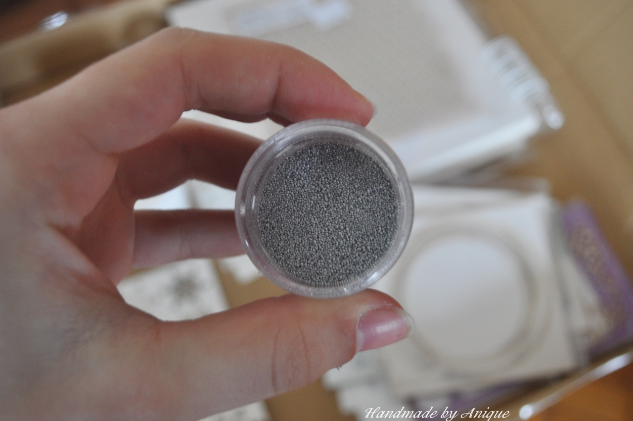 I w końcu coś nowego. Kolejne postanowienie na ten rok - zaprzyjaźnić się z mediami choć odrobinę. Na liście zakupów są przede wszystkim mgiełki i maski (choć tuszy też u mnie mało), ale to kropla w morzu potrzeb ;) Mikołaj narazie zadbał o "magiczny" proszek (magia świąt) i mikrokulki, w których jestem zakochana i chciałabym mieć je w każdym kolorze.