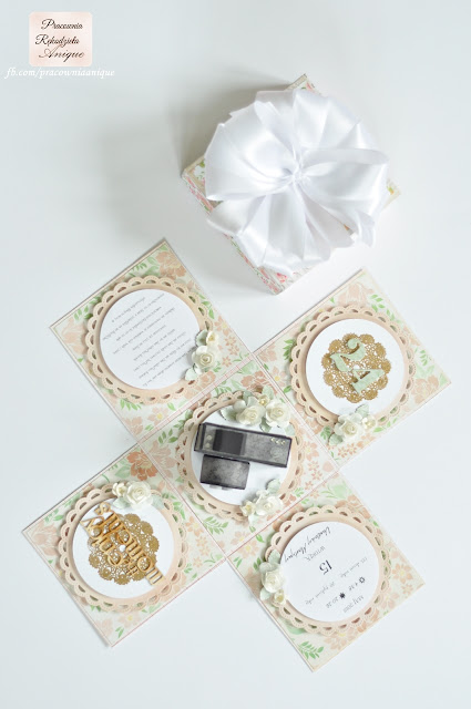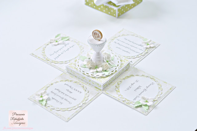 Wyjątkowy box komunijny w kolorach zieleni i kremu.